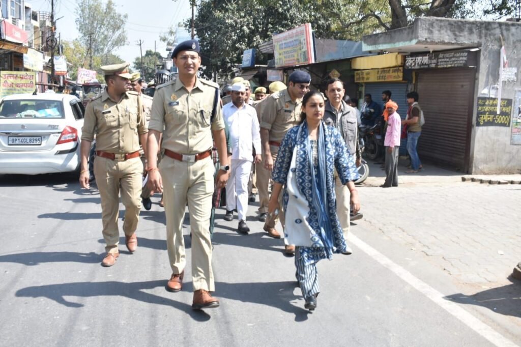 बुलन्दशहर – आगामी होली पर्व, ईद के त्यौहार को सौहार्द पूर्ण वातावरण में मनाए जाने के दृष्टिगत कानून व्यवस्था बनाए रखने के लिए जिलाधिकारी एवं एसएसपी ने पुलिस बल के साथ खुर्जा नगर में पैदल गस्त की। पैदल गस्त के मौके पर नगर में दो जगह पर छोटी एवं बड़ी होली दहन स्थल का निरीक्षण करते हुए होलिका दहन के बारे में स्थानीय निवासियों से जानकारी ली। उन्होंने कहा कि सुरक्षा व्यवस्था बनाए रखने के लिए सीसीटीवी कैमरे लगवाए जाए। सभी से अपील की गई कि त्यौहार को आपसी भाईचारे के साथ मनाए। थाना प्रभारी को निर्देश दिए गए कि त्यौहार पर हुडदंग करने वाले असामाजिक तत्वों को चिह्नित करते हुए कार्यवाही करें। इस अवसर पर उप जिलाधिकारी खुर्जा प्रतीक्षा पांडेय, सीओ खुर्जा विकास प्रताप सिंह चौहान उपस्थित रहे।
