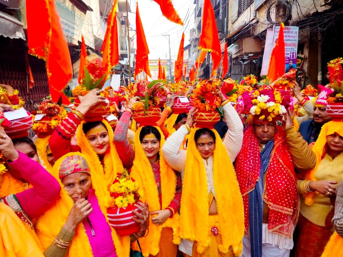 श्री मंशा देवी मदिर में श्रीमद भागवत कथा सें पूर्व नगर में कलश यात्रा बडें ही उत्साह के साथ निकाली गयी। कलश यात्रा श्री चंडी मदिर सें मंत्रो द्वारा प्रारभ किया गया। कलश यात्रा चंडी रोड़ सर्राफा बाजार, छोटी मंडी, कसेरठ बाजार, माता मौहल्ला, कोठी गेट, बुलंदशहर रोड़ होती हुई मंशा देवी पर पहुंच कर सपन हुई। कलश यात्रा में बगगी पर सवार कथा वाचक आचार्य राजीव कृष्ण भारद्वाज विराजमान रहें। कलश यात्रा में अनेक बैड बाजें एवं संकीर्तन मंडलिया शामिल रही। संकीर्तन में भजन गायक अपनी मधुर आवाज में सुदर-सुदर भजनों का गुणगान करतें हुए चल रहें थें। भजनों पर भक्तजन नाचतें झमूतें हुए चल रहें थें। कलश यात्रा में महिलाऐं पीलें वस्त्र धारण करतें हुए अपनें सिरों पर कलश रखकर मदमस्त होकर नाचतें गातें हुए चल रही थी। कलश यात्रा का अनेक स्थानों पर पुष्प वर्षा कर भव्य स्वागत किया गया। इस मौके पर मदिर कमेटी के पदाधिकारीगण एवं सदस्यगण तथा महिला श्रद्धालुजन प्रमुख रूप सें उपस्थित रहें।