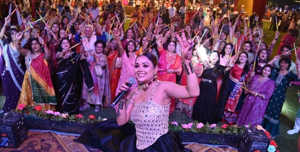 हापुड़— लायंस क्लब इंटरनेशनल द्वारा रविवार की रात मनोहर हेरिटेज में डांडिया नाइट कार्यक्रम का भव्य आयोजन किया गया। कार्यक्रम में सैकड़ों की संख्या में लोगों ने गायक अलीशा अरोड़ा के गीतों पर झूमते हुए डांडिया खेला। रंगारंग माहौल और पारंपरिक परिधानों में सजे लोगों ने गरबा और डांडिया से शाम को यादगार बना दिया।
