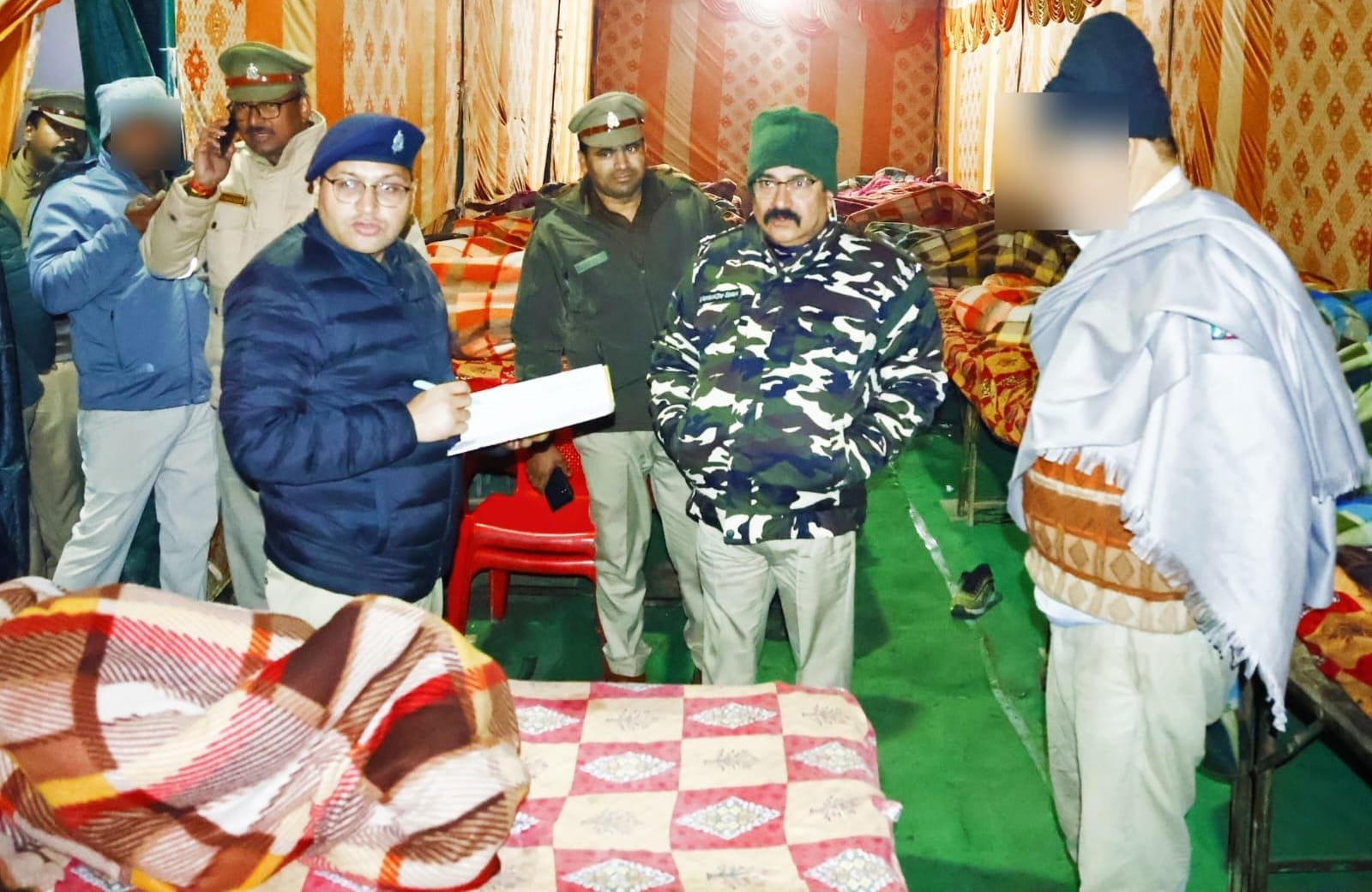 हापुड – पुलिस अधीक्षक नें बीती देर रात नगर में नगर पालिका द्वारा संचालित रेन बसेरों का सुरक्षा के मददेनजर औचक निरीक्षण करतें हुए रेन बसेरों में तैनात कर्मचारियों को सुरक्षा को लेकर आवश्यक दिशा निर्देश दियें गयें। पुलिस अधीक्षक ज्ञांनजय सिहं नें बीती देर रात नगर पालिका द्वारा संचालित नगर में बनायें गयें रेलवें रोड़ तथा अतरपुरा चौपलें पर स्थित रेन बसेरों का सुरक्षा को लेकर औचक निरीक्षण किया गया। पुलिस अधीक्षक नें रेन बसेरों में तैनात कर्मचारियों सें रेन बसेरों में निवास करनें वालें लोगों की सुरक्षा को लेकर आवश्यक दिशा निर्देश दियें। पुलिस अधीक्षक नें बताया कि रेन बसेरों में प्रत्येक दिन निवास करनें वालें व्यक्ति नाम पता रजिस्टर में अकिंत अवश्य होना चाहियें। उन्होनें बताया कि रेन बसेरों को सुरक्षा के मददेनजर सीओं सिटी व कोतवाली प्रभारी को समय-समय पर निरीक्षण करनें के निर्देश दियें गयें है। इस मौके पर सीओं सिटी जितेन्द्र शर्मा, कोतवाली प्रभारी मुनीश प्रताप सिहं आदि प्रमुख रूप सें मौजूद रहें।