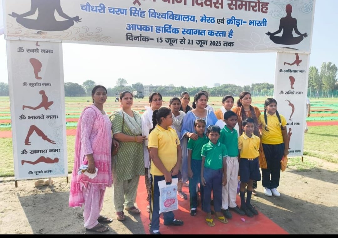शनिवार को विश्व योग दिवस पर विद्यालय के बच्चों, टीचर्स व विद्यालय स्टाफ को चौधरी चरण सिंह विश्वविद्यालय में आयोजित योग शिविर में सम्मिलित होने का अवसर प्राप्त हुआ। इस मौके पर विद्यालय के बच्चों तथा उनके अभिभावकों ने भी बढ़ चढ़कर भाग लिया। इस अवसर पर विद्यालय की प्रधानाचार्य श्रीमती शर्मिष्ठा भाटी व विद्यालय स्टाफ प्रीति, जागृति, राखी, नीतू, दीप्ति, सुधा मोहन, प्रियंका, पूजा, अनुज, अनुराधा, सुन्दरी व सुधा जी आदि मौजूद रहे।